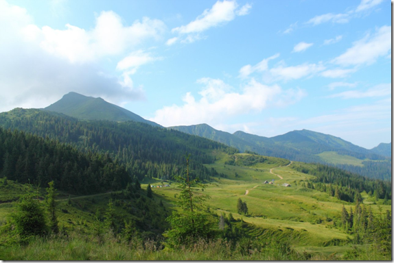Біля гори Стіг “прощаємось” з державним кордоном і знову “заглиблюємось в Україну”. Дорога широка й зручна, погода чудова, краєвиди симпатичні. Перша ж велика колиба виявляється забитою чабанами й худобою. Спокуса не довго з нами боролась – купуємо у цих суворих хлопців кілька пляшок козячого молока й кіло якогось смачнющого сиру, в процесі роздивляючись різні “тонкощі” виробництва молочних продуктів на полонині. А пастухи між собою гигочуть: “та дівка каже, що вівці не бачила” - у відповідь на неприхований інтерес Ленчіка до діжок з молоком та сиром.