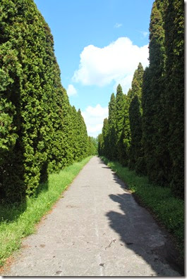 За палацом починається парк. Хоча парком він є тільки у назві, це – повноцінний ліс, де рідкі залишки паркової архітектури заховані в густих хащах. Площа лісу – чимала, В долині розташовано ряд ставків - з якими ми вже знайомі. Судячи з кількості рибалок на берегах – ставки достатньо наповнених різними мешканцями.